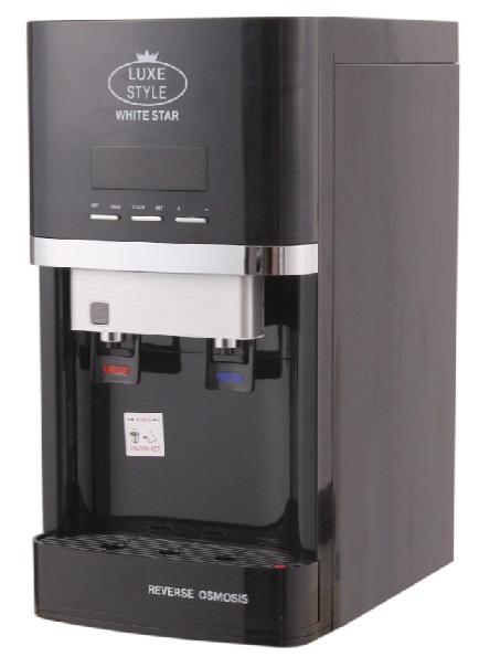 Επιτραπέζιος ψύκτης RO για διανομή πόσιμου νερού σε γραφεία και σπίτια. Συνδέεται απ’ ευθείας με τη δημόσια παροχή νερού. Έχει ενσωματωμένο σύστημα αντίστροφης όσμωσης.