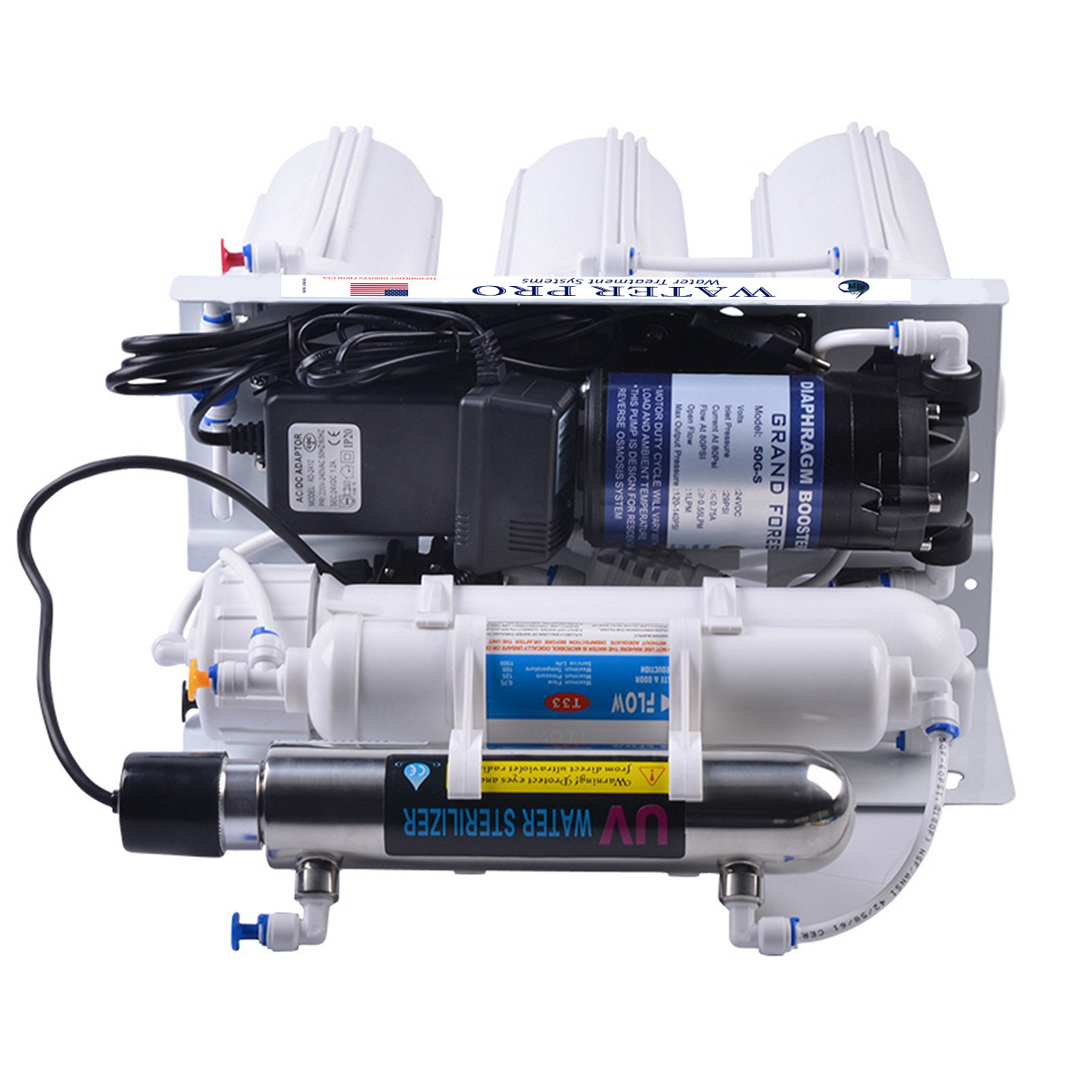 Το σύστημα αντίστροφης όσμωσης 5 σταδίων WP-RO50-A2UV προσφέρει την δυνατότητα παραγωγής πόσιμου νερού εξαιρετικής καθαρότητας με τους κατάλληλους συνδυασμούς φίλτρων και μεμβρανών, συνοδεύεται από βρυσάκι καθαρού νερού το οποίο τοποθετείται πάνω στον πάγκο της κουζίνας και ένα πλήρες σετ εγκατάστασης. Το μηχάνημα WP-RO50A2UV διαθέτει επίσης και ένα 6ο στάδιο που είναι η λάμπα UV.